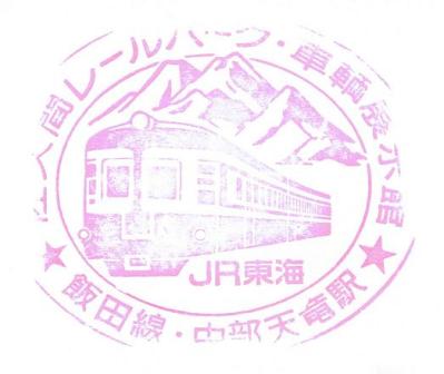 中部天竜駅 2025.11.02 収集日 2009年8月 収集した人 S 所在地 静岡県/JR_飯田線 ジャンル 鉄道 スタンプの色 赤系 スタンプの形状 丸 所在地欄にある路線名はスタンプに記載がある場合はその路線名を、スタンプに記載がない場合は乗り入れ路線名を書いています。